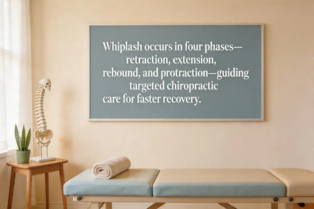 whiplash motion can be broken into four distinct phases. First, retraction occurs when the head snaps backward rapidly, stretching the posterior neck structures. Second, extension follows as the head then wh forward, compressing the anterior tissues. Third, rebound is the brief return of the head toward its original position, creating a secondary stretch‑compress cycle. Finally, protraction is the settling phase in which soft‑tissue tension eases as the neck returns to neutral alignment. Understanding each phase helps clinicians target the specific muscles, ligaments, and joints that need treatment.