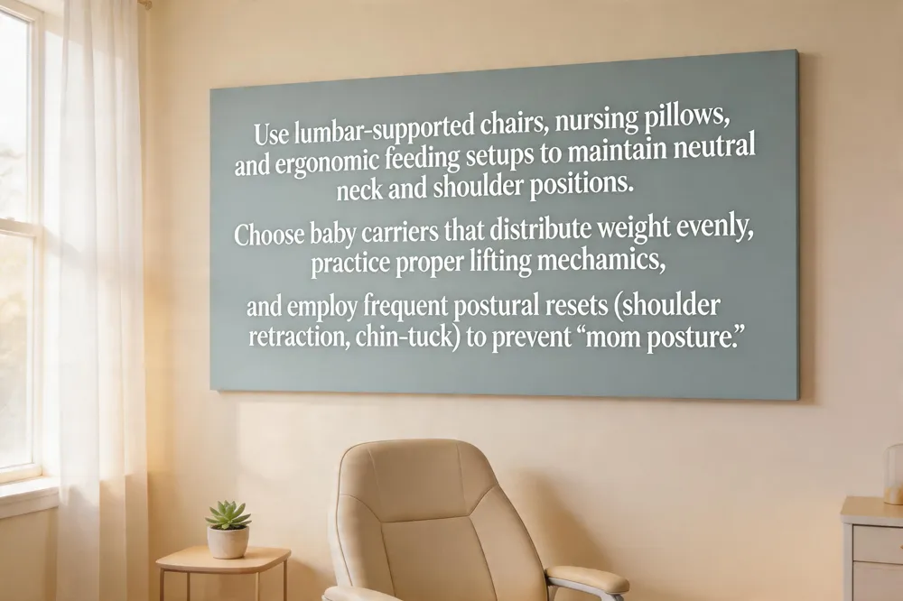 Postural resets while nursing – Perform a quick shoulder‑retraction and chin‑tuck every few minutes to counteract “mom posture.”
