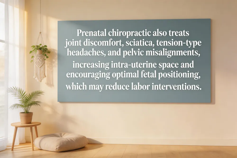 Many expectant mothers think chiropractic care only eases back pain, but prenatal chiropractors also treat joint discomfort, sciatica, and tension‑type headaches. Gentle, low‑force adjustments restore proper spinal and pelvic alignment, which can increase intrauterine space and encourage optimal fetal positioning, reducing the chances of breech or posterior presentations and potentially lowering the need for cesarean delivery. The same adjustments promote relaxation, lower muscular tension, and improve sleep quality, helping pregnant women cope with stress and fatigue.