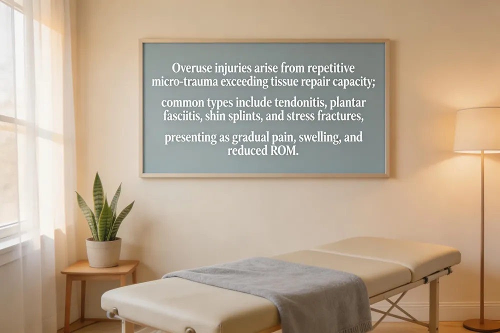 An overuse injury is damage to musculoskeletal tissue that results from repetitive micro‑trauma exceeding the body’s capacity to repair and adapt. Unlike acute injuries, it develops gradually as repeated stress accumulates, leading to pain, inflammation, and functional loss.