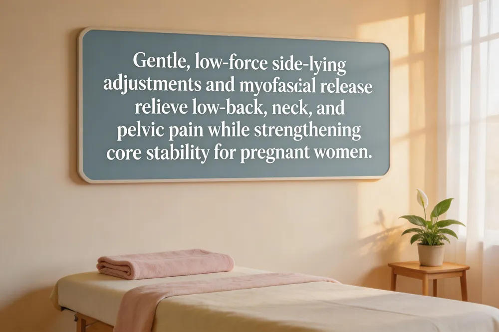 About half of all pregnant women develop low‑back pain, and up to 75 % report discomfort during labor. Gentle, low‑force spinal adjustments—performed in side‑lying or left‑lateral decubitus positions—realign the lumbar spine and sacroiliac joints without pressure on the abdomen. Targeted myofascial release of the piriformis and iliopsoas muscles further eases tension, while strengthening the transversus abdominis restores core stability and counters the exaggerated lumbar lordosis of later pregnancy.
