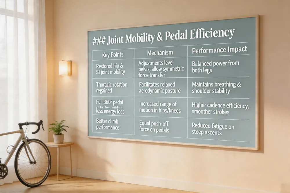 | Restored lower‑body chain flexibility | Allows fuller aerodynamic position | Increased hip/knee mobility → higher power output |