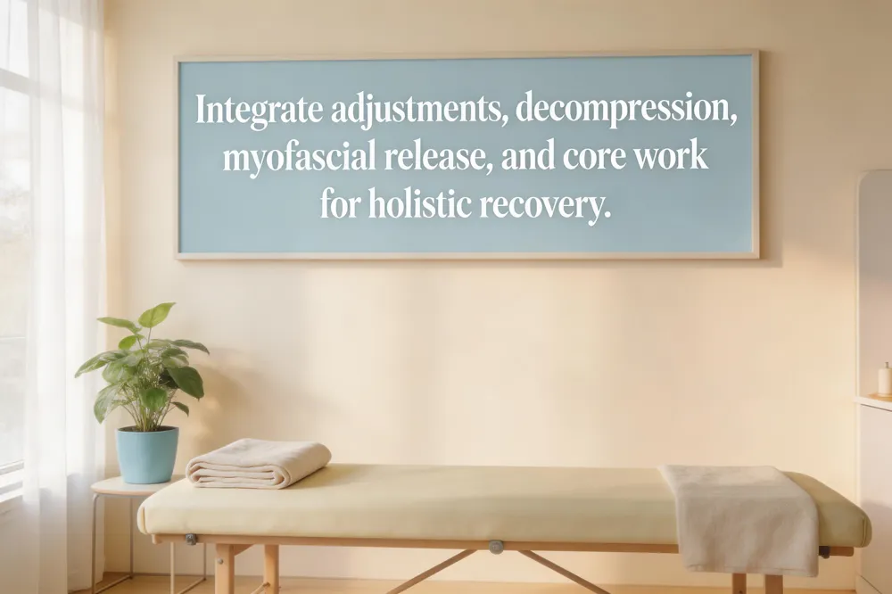Overall management without surgery – Consistent adherence to this multimodal plan—spinal adjustments, decompression, myofascial release, cold laser, core‑strengthening, medication, and lifestyle education—yields significant symptom relief in 4‑6 weeks for most patients, minimizing the need for operative intervention.