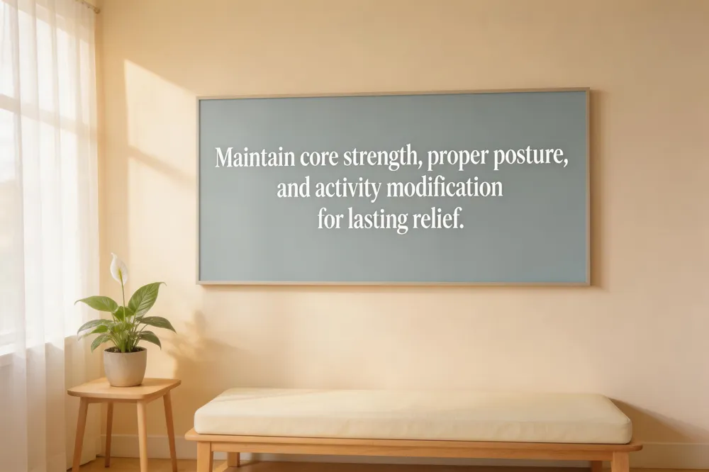 Patient education and activity modification are essential. Patients are taught proper body mechanics, safe lifting techniques, and the importance of regular low‑impact aerobic activity (walking, cycling) to maintain spinal health. Short, frequent walks replace prolonged bed rest, while intermittent cold packs reduce acute inflammation and gentle heat afterward relaxes muscles.