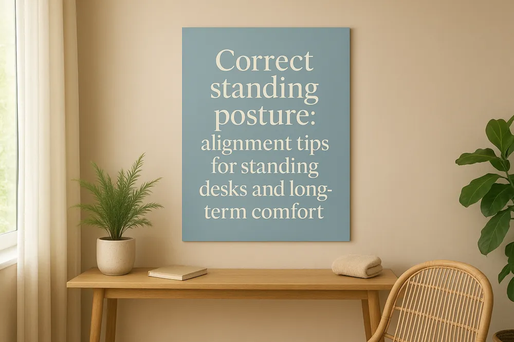| Ergonomics standing | Screen at eye level, feet shoulder-width | Promotes relaxation and prevents fatigue (see "Standing Desk Eye-Level Screen Posture") |