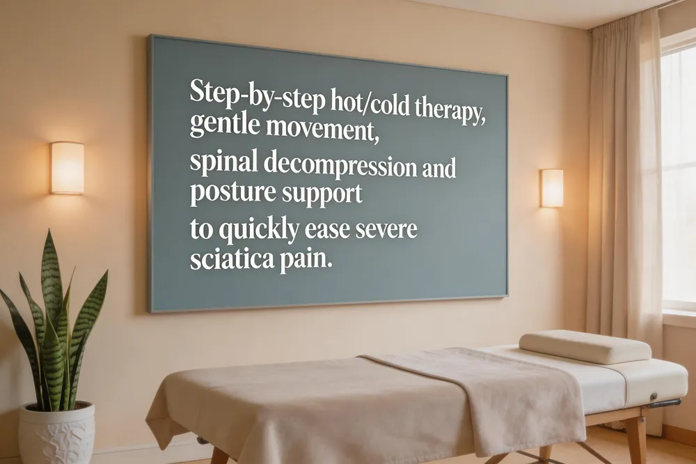 Immediate relief for sciatica pain – Apply heat after the initial cold phase, engage in low‑impact movement, receive a targeted spinal decompression and cold‑laser session, and maintain lumbar support.