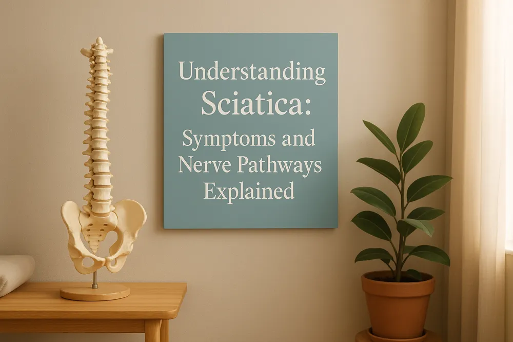 Sciatica is a common condition caused by irritation or compression of the sciatic nerve anatomy, the longest and thickest nerve in the body. This nerve runs from the lower back down each leg. Sciatica usually presents as sharp, shooting, or burning pain radiating from the lower back, through the buttock, and into one leg or foot. Along with pain, individuals frequently experience tingling, numbness, and muscle weakness. Sensations can also include electric shocks or pins-and-needles feelings. These symptoms vary in intensity and duration.