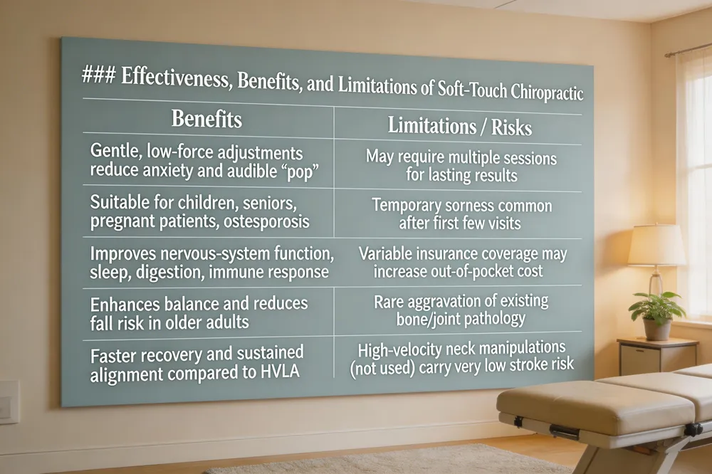 Effectiveness, Benefits, and Limitations of Soft‑Touch Chiropractic