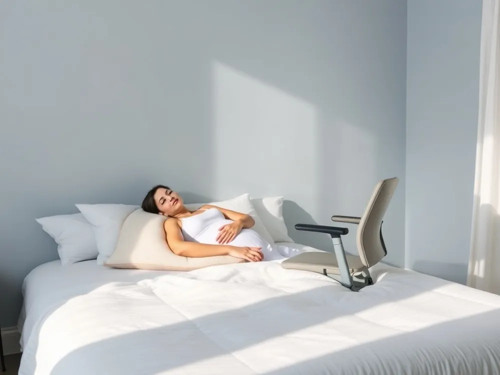 Optimal sleep positioning supports spinal alignment and reduces nighttime discomfort. Side‑sleeping on the left with a pillow between the knees is recommended; sleep on your side—preferably the left side—with your knees slightly bent. Place a pillow between your legs to keep your hips and pelvis in a neutral position, and another pillow under your belly for extra support. Using pregnancy pillows for neutral spine alignment can help maintain a straight line from your shoulders to your hips, preventing twisting. Avoid sleeping on your back after the first trimester, as the uterus can compress major blood vessels and alter spinal loading. Choosing a firm, supportive mattress for spinal health prevents sagging, and when getting out of bed, use a Safe way to get out of bed during pregnancy: roll onto your side, draw your knees toward your chest, and use your arms to push up slowly.