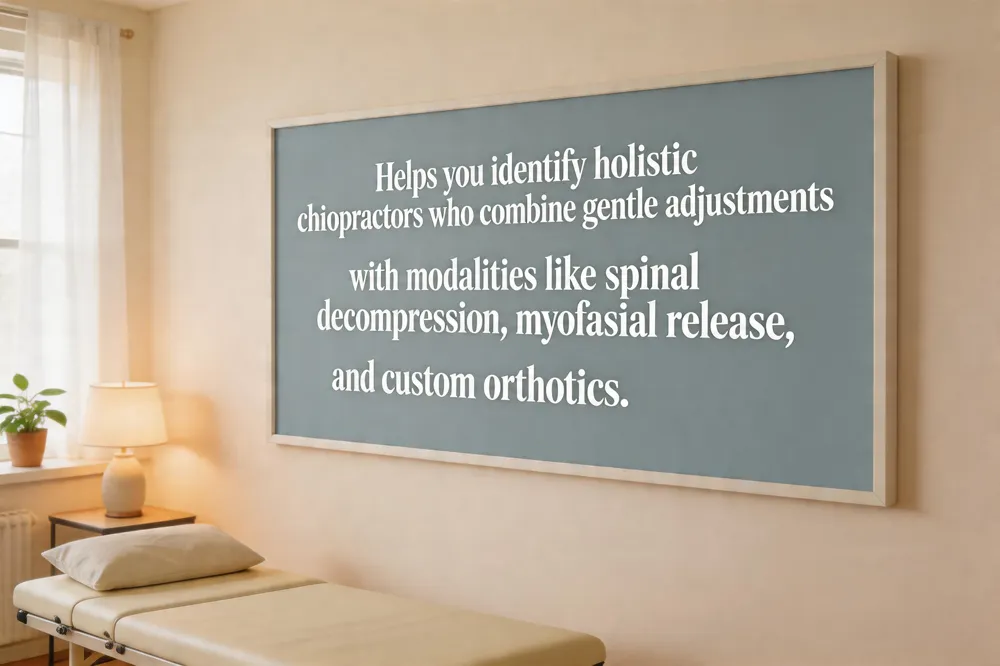 Holistic chiropractors near me For a holistic chiropractor nearby, Dr. Allison Ross, DC provides a practice that blends adjustments with modalities such as spinal decompression, myofascial release, cold laser therapy, corrective exercises, and custom orthotics. Each visit includes a personalized assessment and education to support long‑term posture, mobility, and preventative health.