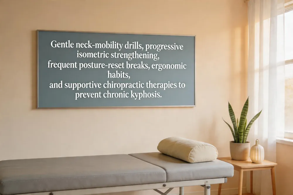 By integrating gentle mobility drills, progressive isometric strengthening, and consistent ergonomic cues, patients restore neck function while minimizing the chance of long‑term kyphosis.