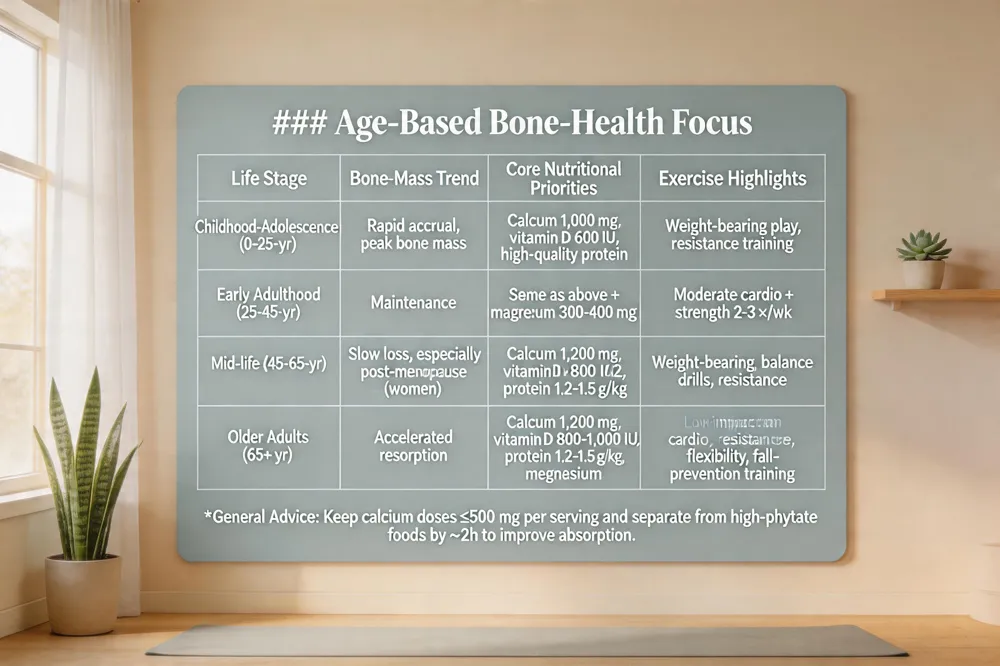 | Life Stage | Bone‑Mass Trend | Core Nutritional Priorities | Exercise Highlights |