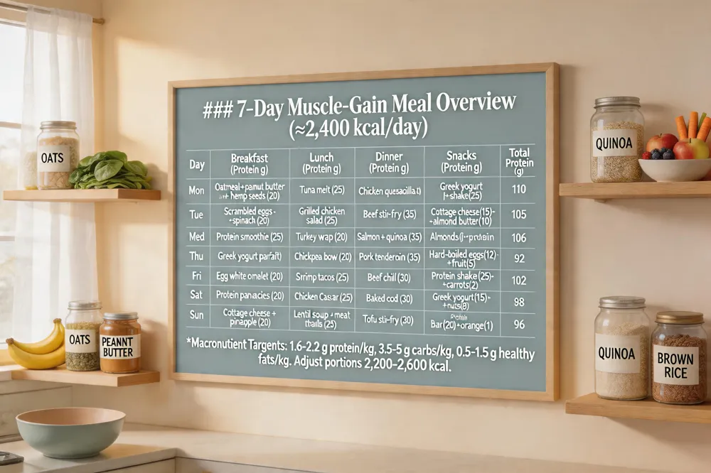 7‑Day Muscle‑Gain Meal Overview (≈2,400 kcal/day)