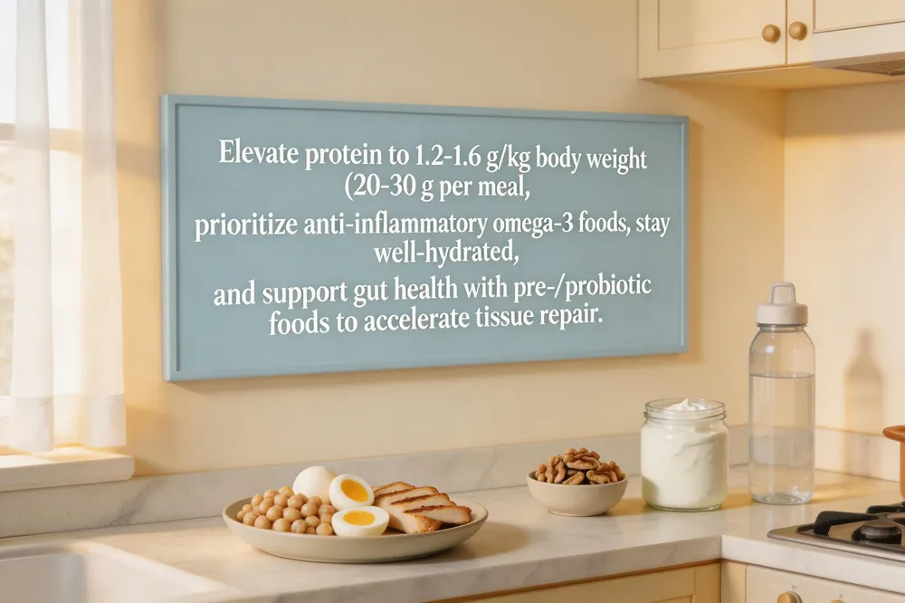 Hydration and gut health – Aim for 2‑3 L of water daily, more with intense rehab. Incorporate prebiotic fibers (oats, bananas) and probiotic foods to support a healthy microbiome, which can affect systemic inflammation and recovery speed.