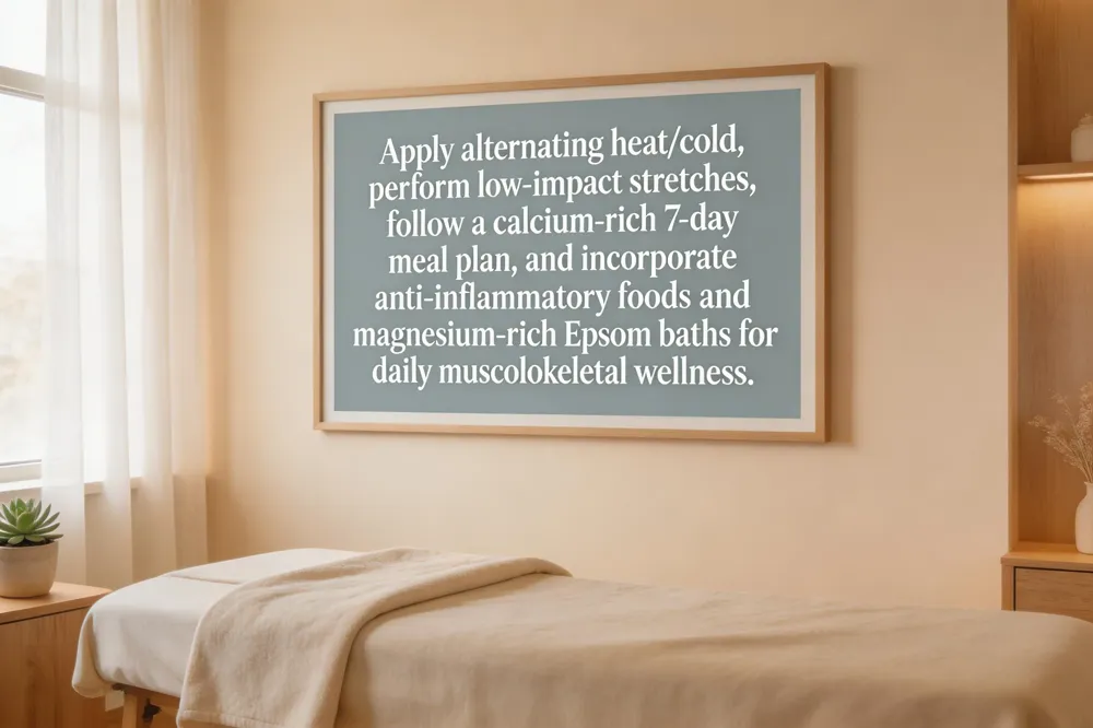 Use alternating heat and cold packs to cut inflammation and ease stiffness. Gentle low‑impact activities—walking, yoga, hamstring, quadriceps, and chest‑opener stretches—improve flexibility, strengthen supporting muscles, and promote better posture. Add natural anti‑inflammatory agents such as turmeric, ginger, or arnica in teas, supplements, or topicals. An Epsom‑salt bath supplies magnesium that soothes sore muscles. If pain persists, consult Dr. Allison Ross, DC, for personalized chiropractic care.