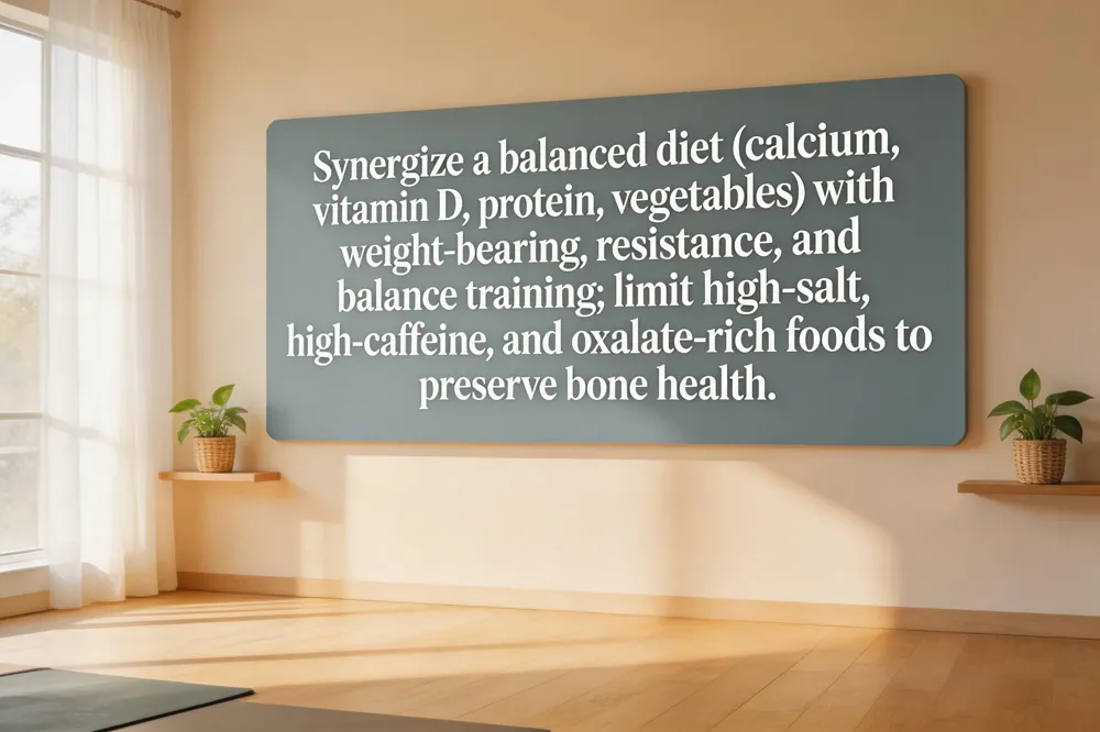 A balanced diet rich in calcium, vitamin D, protein and vegetables supports bone density and muscle strength, reducing falls and fractures. Weight‑bearing, resistance and flexibility exercise stimulate bone remodeling and preserve muscle mass. Combined, nutrition and exercise act synergistically, lowering inflammation and enhancing tissue repair.