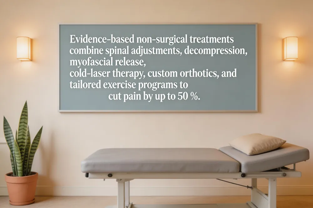 What are the best non‑surgical treatments for back pain? The most effective non‑surgical regimen blends hands‑on spinal care (adjustments, decompression, myofascial release, cold‑laser therapy) with a tailored exercise and lifestyle plan, including custom orthotics, mindfulness, and anti‑inflammatory nutrition, delivering drug‑free, surgery‑free relief and long‑term functional improvement.