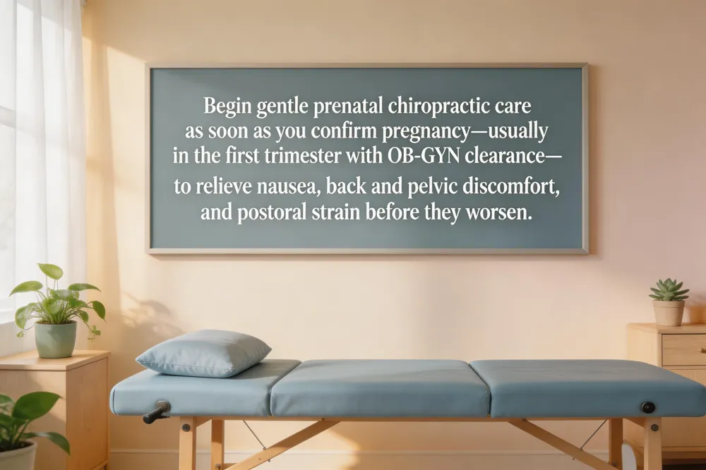 When to start chiropractic care during pregnancy – Most women can begin gentle prenatal chiropractic care as soon as they discover they are pregnant, often during the first trimester, after getting clearance from their OB‑GYN. Early treatment addresses hormonal‑related nausea, back and pelvic discomfort, and postural changes before they become severe. Regular adjustments in the second trimester support the shifting center of gravity, reduce hip and sciatica pain, and keep the pelvis aligned for a smoother third trimester. In the final months, care can ease swelling, improve sleep, and use the Webster Technique to promote optimal pelvic positioning for labor.