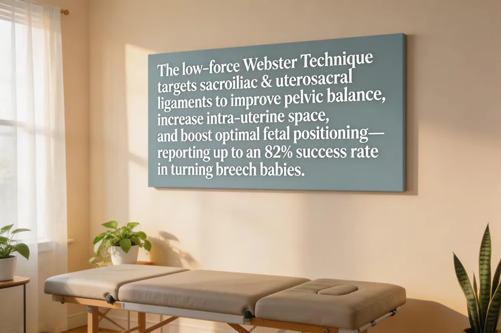 The Webster Technique is a gentle, low‑force chiropractic adjustment specifically designed for pregnant patients. By targeting the sacroiliac joints, uterosacral ligaments, and round ligaments, it aims to correct sacral subluxations, improve pelvic balance, and enhance nervous‑system function. Certified practitioners—often holding DACCP, CACCP, or Webster certifications—use side‑lying or seated positioning on specially padded tables to avoid abdominal pressure. Research published in the Journal of Manipulative and Physiological Therapeutics (2002) reported an 82 % success rate in turning breech babies when the technique was applied in the eighth month, suggesting a role in optimizing fetal positioning and potentially shortening labor.