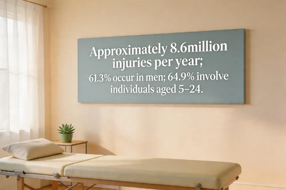 According to the Centers for Disease Control and Prevention (CDC), approximately 8.6 million sports‑related injuries occur in the United States each year. Men account for a clear majority of these incidents, representing about 61.3 % of all reported injuries. Age is another strong predictor, with individuals aged 5‑24 years comprising roughly 64.9 % of the injured population. These statistics underscore the high prevalence of acute musculoskeletal trauma—particularly sprains, strains, and bruises—among young athletes and active adults. Understanding the scale and demographic distribution of sports injuries helps clinicians and coaches prioritize prevention strategies, early intervention, and targeted rehabilitation programs to reduce overall injury burden.