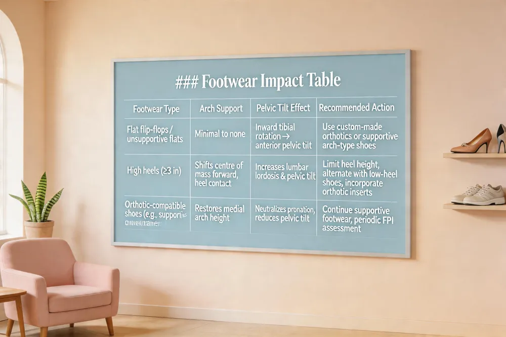 | Footwear Type | Arch Support | Pelvic Tilt Effect | Recommended Action |