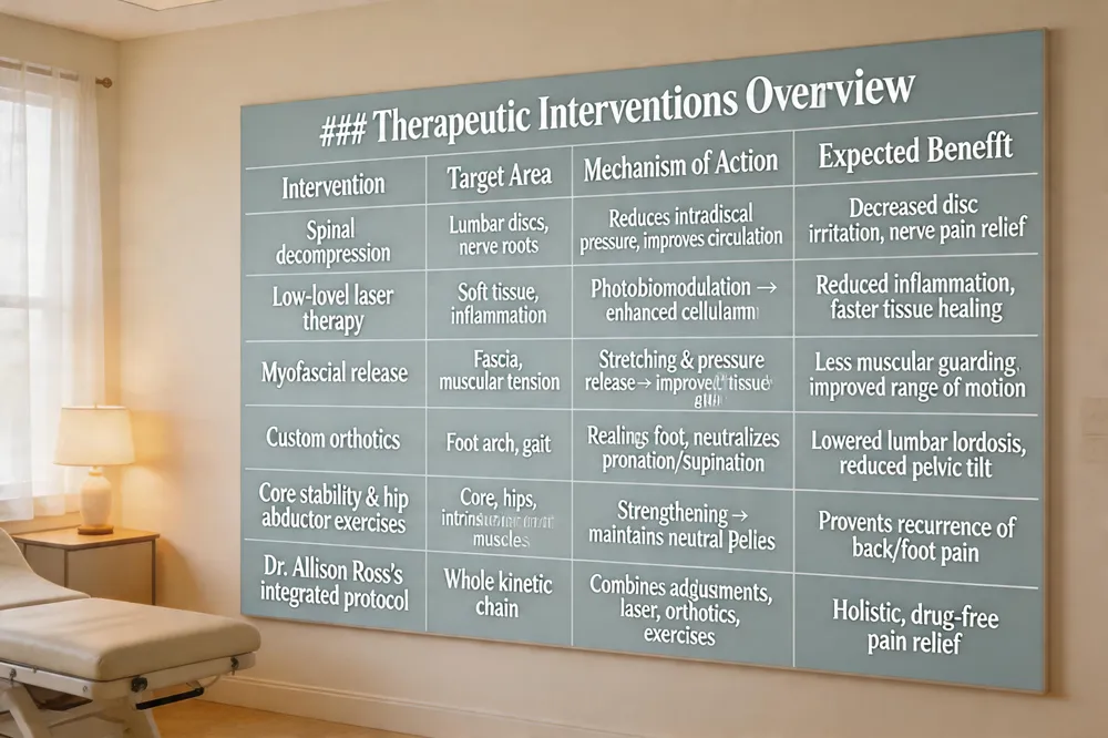 | Dr. Allison Ross’s integrated protocol | Whole kinetic chain | Combines adjustments, laser, orthotics, exercises | Holistic, drug‑free pain relief |