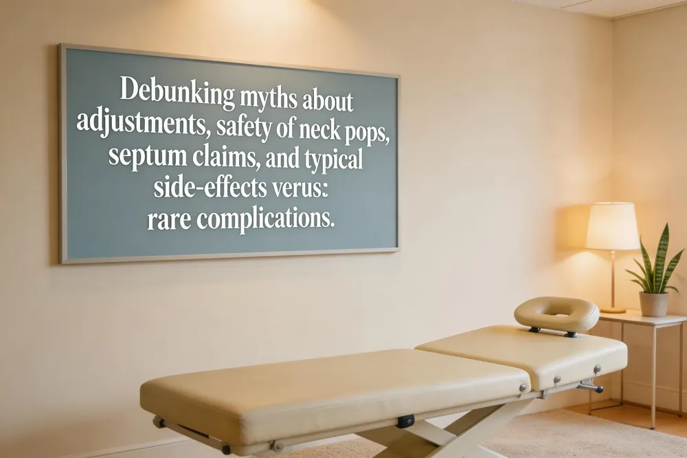 Side‑effects after adjustments are usually mild and short‑lived: temporary muscle soreness, stiffness, fatigue, or a brief headache that resolves within 24‑48 hours. Rare serious complications such as vascular injury or worsening disc pathology are uncommon when care is provided by a qualified, licensed chiropractor.