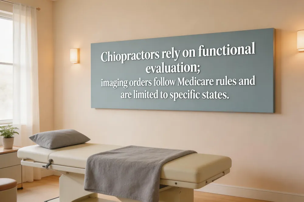 Medicare imaging rules – Chiropractors generally cannot order MRI for Medicare beneficiaries; a treating physician must place the order per CMS 42 CFR 410.32(a). Only a few demonstration states (Maine, New Mexico, parts of IL, IA, VA) allow limited chiropractor‑ordered CT/MRI with proper documentation.