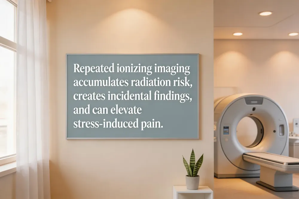 Physiological effects of unnecessary imaging – cumulative radiation, tissue inflammation, and stress‑induced cortisol spikes can outweigh any marginal benefit.